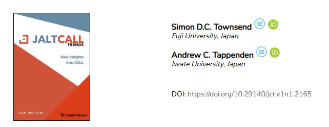 - Research Title: Townsend, S. D., & Tappenden, A. C. (2025). Utilizing an AI-CEFR checker: What is the efficacy for utilizing CEFR results for first year university students?. JALTCALL Trends, 1(1), 2165-2175.