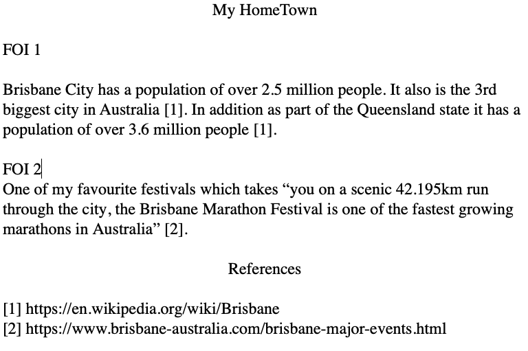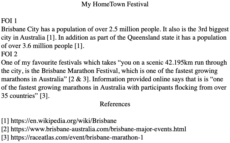 Two rules; maximum word count (half a page); required – 1 to three appendix references using A1, A2, and A3.